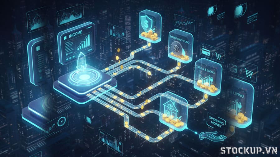 Thiết lập “Ưu tiên tiết kiệm”: Đặt lệnh chuyển tiền từ tài khoản Hub sang tài khoản tiết kiệm/đầu tư vào ngày nhận lương + 1 ngày.